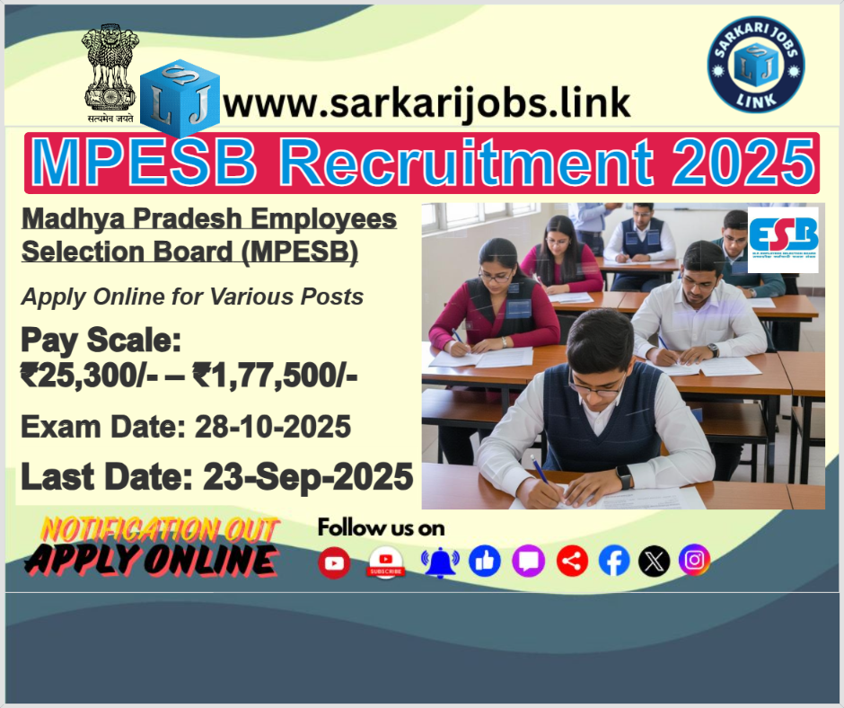 The Madhya Pradesh Employees Selection Board (MPESB), formerly known as MP Vyapam, has announced the MPESB Group-2 (Sub Group-3) Combined Recruitment Test 2025, offering a significant opportunity for candidates seeking government jobs in Madhya Pradesh. This recruitment drive aims to fill 339 vacancies for various posts under Group-2 Sub Group-3, including roles such as Junior Engineer (Civil, Electrical, Mechanical), Laboratory Technician, Field Officer, Occupational Therapist, Inspector (Supply, Weights & Measures), Biomedical Engineer, and Assistant Engineer. With applications opening on September 9, 2025, and closing on September 23, 2025, this is a golden chance for eligible candidates to secure stable and rewarding careers in the Madhya Pradesh state government.